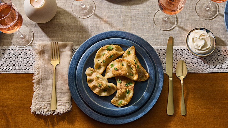 Pierogi com recheio de espinafre e alcachofra
